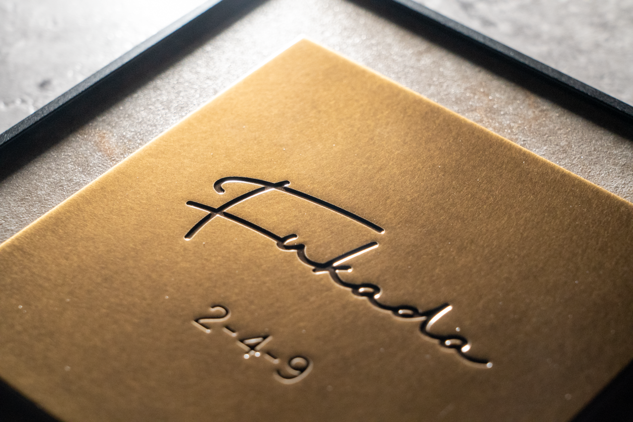 ステンレス製のフレームサインに、繊細な輝きを纏ったメタリックブラック塗装を施しました。