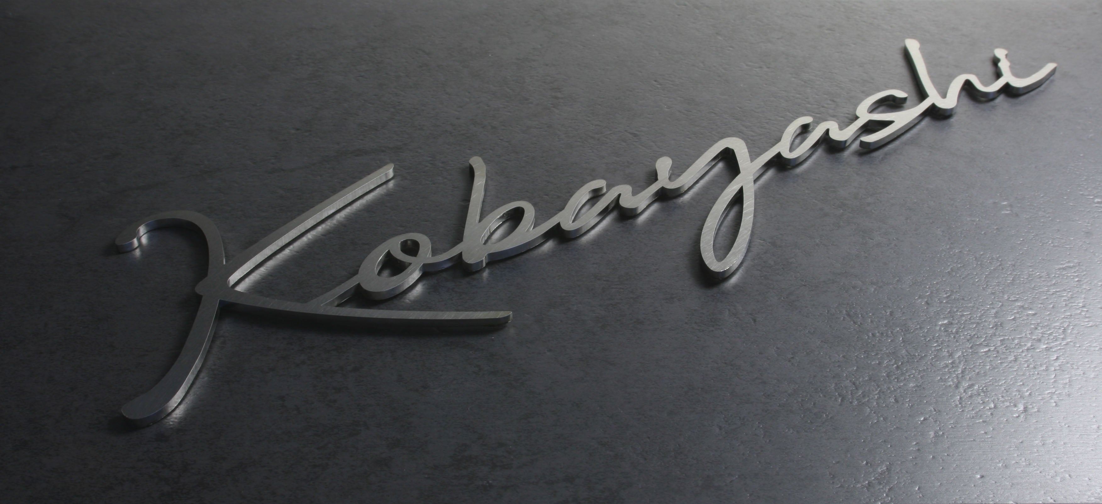 金属素材を精密にレーザーカットした切文字サイン。トレンドの筆記体を採用し、優雅で洗練された印象を与えます。