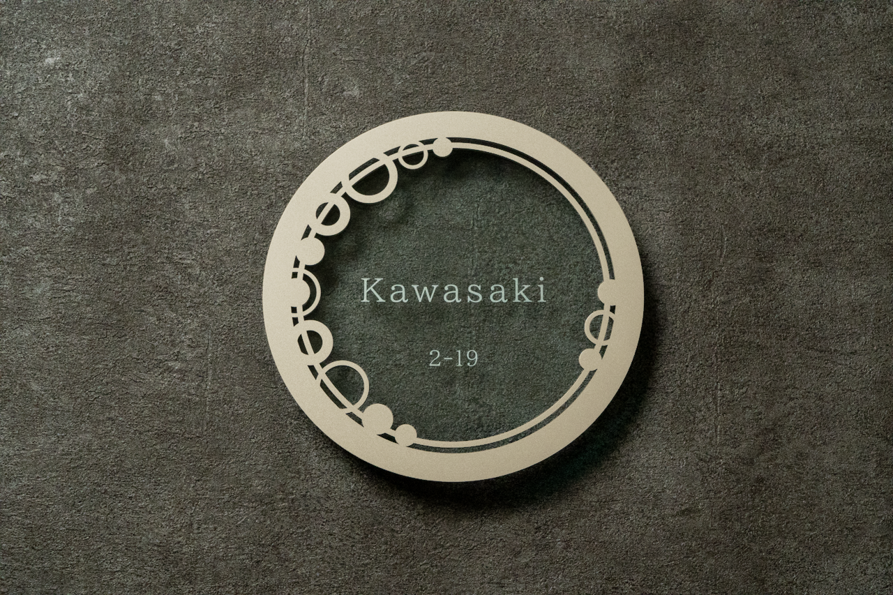 透明感あるガラスアクリルとステンレスフレームを使用した円形デザイン。丸いフォルムは柔らかさと調和を象徴し、玄関に優雅で親しみやすい雰囲気をもたらします。ステンレスのフレームは、モダンでシャープな印象をプラスしながら、耐久性と美しさを長く保ちます。シンプルでありながら存在感のあるデザインが、住まいに上品で洗練された第一印象を与えます。