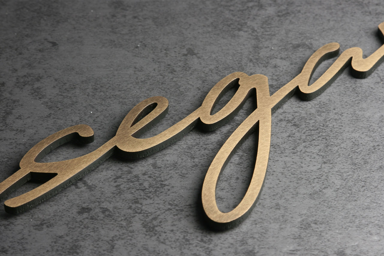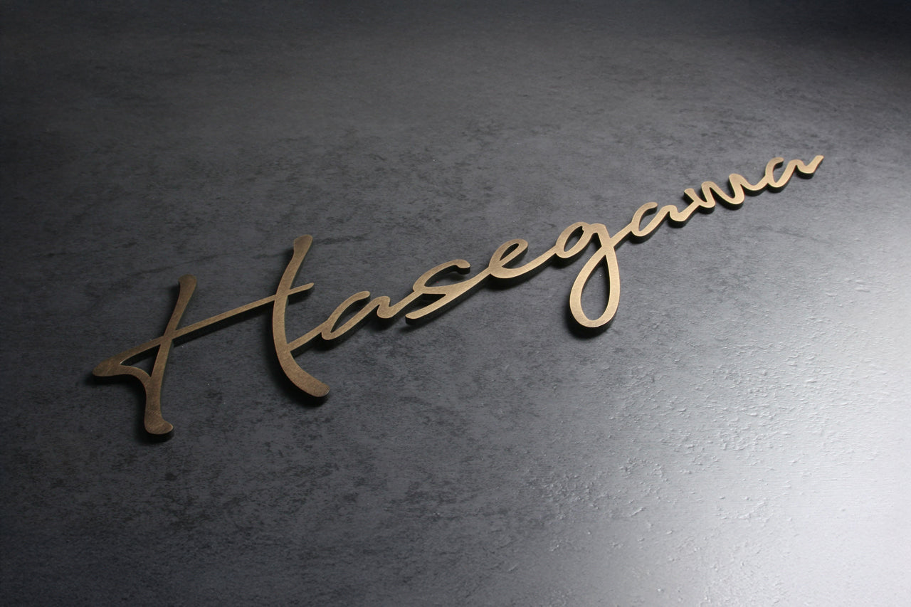 優雅な筆記体が引き立つ、上質な切文字サイン。精緻なレーザーカットが生む美しい輪郭と、仕上げの風合いが空間に気品を添えます。シンプルながら存在感があり、洗練された佇まいが上質な暮らしを演出します。