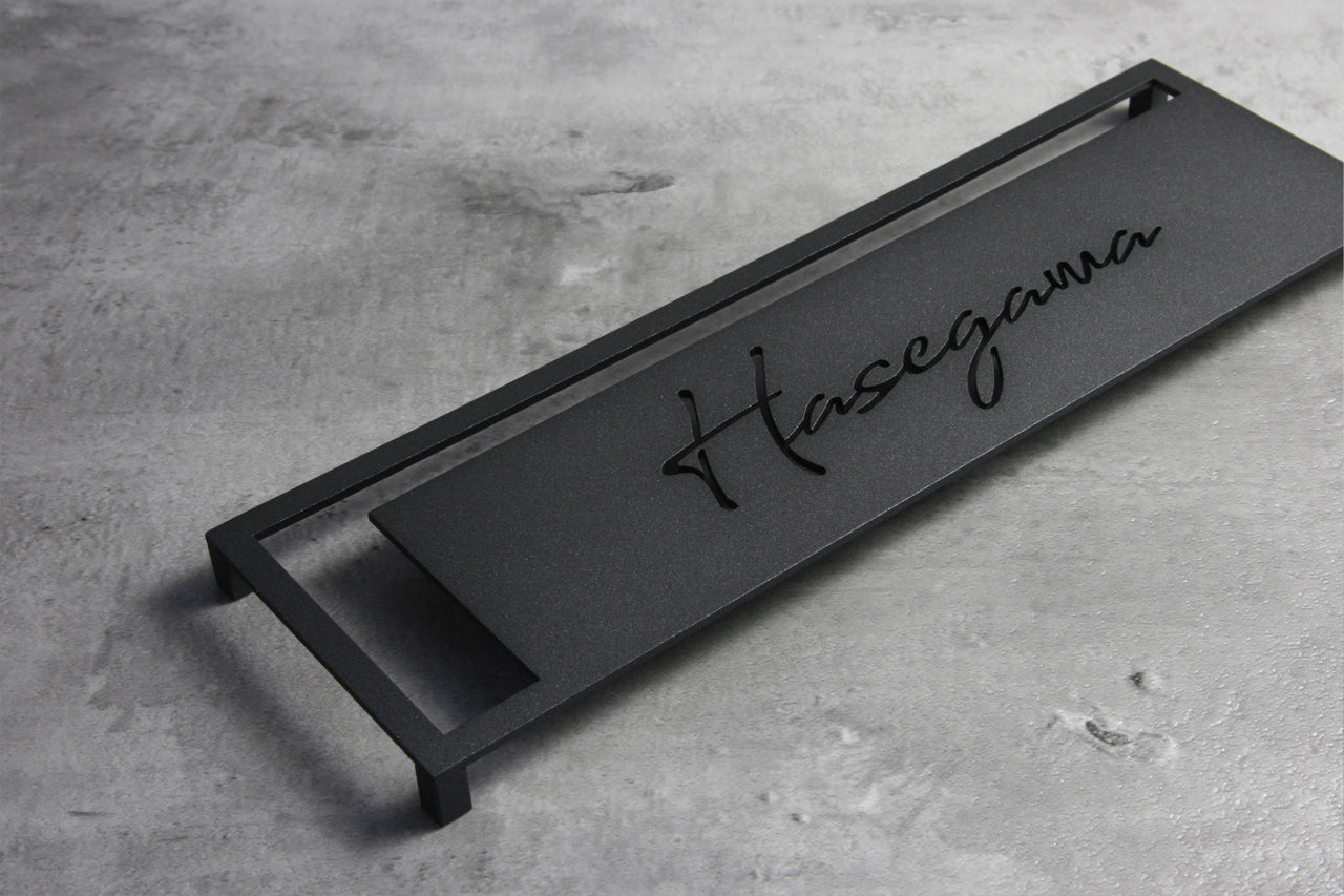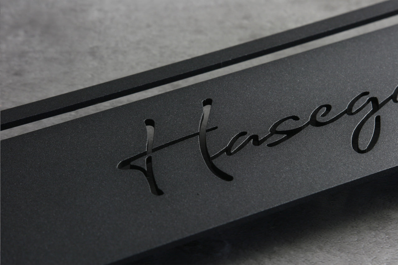 精緻なカッティングと繊細な輝きを纏った塗装仕上のステンレスサインは、気品を感じさせる存在感を持ち、上質な印象を与えます。トレンド感漂うエレガントな筆記体が、洗練された美しさを一層引き立て、上品でスタイリッシュな雰囲気を演出します。